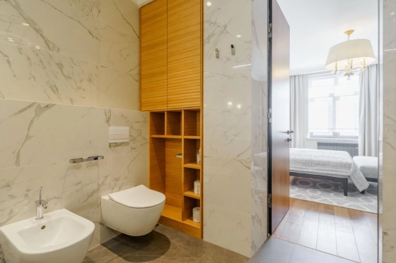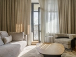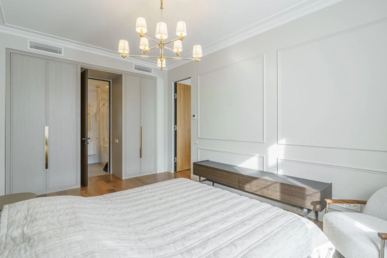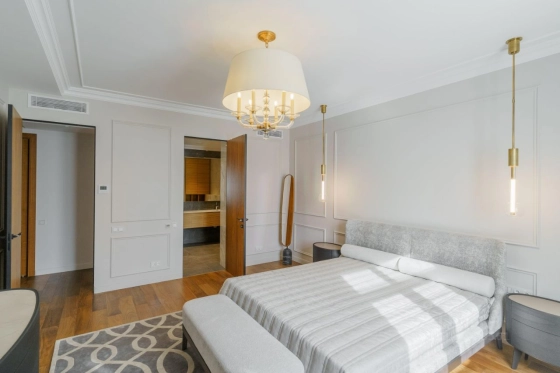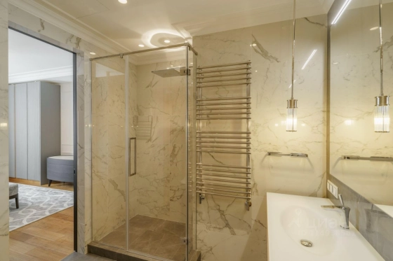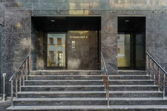 Трехкомнатная квартира в Клубном Доме Zvonarsky Deluxe в центре Москвы, в котором расположилось 24 квартиры. Дом выполнен в неоклассическом стиле с элементами постмодернизма. Для фасадов были выбраны мрамор, травертин и гранит. Площадь квартиры 124 кв. м. Интерьер выполнен в стиле современной классики. Функциональная планировка: объединенная зона кухни-гостиной, две спальни со своими с/у, гостевой с/у. Балкон. Квартира полностью меблирована и оборудована всей необходимой бытовой техникой. В подземном паркинге два машино-места